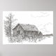 Schwarz-weißer Farbstift im alten Haus Zeichnend Poster