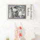 Dieses Stoffbanner ist weiß mit einem schwarz-weiß zeichnend kleinen roten Motorhaube, die ihren Korb hält und in einem extravaganten schwarzen Rahmen mit dem Wolf im Wald spricht. Passen Sie den Text und den Namen des Geburtstags Glücklichen mit der Vorlage an.