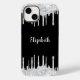 Personalisieren Sie diese trendige, schwarz-weiß tropfende Glitzer iPhone 13 Gehäuse. Erhältlich auch in anderen iPhone- und Samsung-Hüllen.