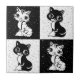 Schwarz-weißer Katzenmonogramm-Block Fliese