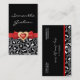 Schwarz-weißer Leopardendruck mit rotem Bug und Ju Visitenkarte
