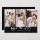 QR Code - Modernes und elegantes Landschaftsbild Horizontal Drei (3) Foto Save the Date Hochzeitsmagnet mit handgeschriebener Schrift Typografie. Der Save the Date einladende Magnet beinhaltet Skripttypografie und schick und schlichtes Design, mit dem Sie Ihre individuelle Verlobung Fotografie hinzufügen können.