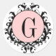 Elegante Pariser schicke rosa Schwarzweiss-Monogramm-Aufkleber mit Damast-Entwurf. Kunst und Entwurf durch Elke Clarke ©2010.Customize mit Ihren Monogramminitialen- und -hochzeitsfarben.