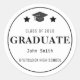 Dieser klassisch elegante Abschluss-Design-Aufkleber mit individuelle Name, Klasse der Abschluss-Jahreszahl, zwei schwarzen Sternen, einer schwarzen Graduierungshülse und einem schwarzen Kreis-Symbol, Abschluss auf individuellem Weiß Hintergrund ist eine ideale Wahl für Abschluss-Feiern, Ankündigung, Party oder Einladung. Passen Sie es an, um den Hintergrund und andere Texte so zu ändern, wie Sie es wünschen.