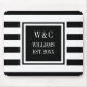 Elegante personalisierte Initialen Monogramm-Mauspad mit einem schwarz-weiß gestreiften Muster mit Ihren Initialen und Familiennamen mit Ihrem etablierten Date Set in einem schwarz-borderten Quadrat mit einem klassischen weißen Text. Entwickelt von Thisisnotme©