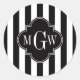 Schwarz-weißer Streifen, schwarze Quatrefolie 3 Mo Runder Aufkleber