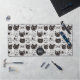 Diese lustige Schreibtischmatte hat ein Muster aus lustigen Cartoon-Katzengesichtern in Schwarz und Weiß. Ein Kreis-Banner mit dem Monogramm in Weiß befindet sich unten in der Mitte. Sicher ein Lächeln mitbringen! *Dank Soul Cliparts World für die Katzengesichtsbilder in diesem Design.