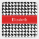 Schwarz-weißes Hahnentrittmuster Roter Name Monogr Quadratischer Aufkleber