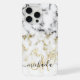 Schwarz-weißer Marmor Gold funkeln Monogram iPhone 15 Pro Max Fall. Personalisieren Sie das Zubehör Ihres Telefons mit Ihrem Namen. Die goldbraunen, schwarzen und weißen Marmor-Flitter. Elegante, schwarz-weiße Marmorstruktur mit Akzent auf goldenen Glitzer funkeln Flitter. *Foto der Glitzern, nicht der eigentliche Glitzer!