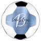Dieser personalisierte Fußball ist mit einem Monogramm und einem Vornamen in modernem Schwarz-Weiß-Drehbuch auf einem glamourös-blauen Metallhintergrund versehen.