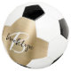 Dieser personalisierte Fußball ist mit einem Monogramm und einem Vornamen in modernem Schwarz-Weiß-Drehbuch auf einem vergoldeten goldgelb gebürsteten Metall-Hintergrund ausgestattet.