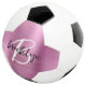 Dieser personalisierte Fußball ist mit einem Monogramm und einem Vornamen in modernem Schwarz-Weiß-Drehbuch auf einem glam rosa gebürstetem Metallhintergrund versehen.