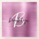 Dieser elegante personalisierte Untersetzer zeichnet sich durch ein Monogramm und einen Vornamen in modernem Schwarz-Weiß-Drehbuch auf einem rosa gebürsteten Metall-Hintergrund aus.