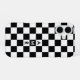 Das coole iPhone Gehäuse weist ein fett schwarz-weiß kariertes Muster mit einer anpassbaren Monogramm auf. Fügen (oder löschen) Sie 3 Initialen oder Zahlen in der Sidebar, um sie zu personalisieren. Das geometrische Schachbrettmuster besteht aus Reihen abwechselnd weißer und schwarzer Quadrate. Andere Gehäusetypen und Modelle sind auch in der Sidebar erhältlich. Um mehr Schachtel Schwarz und Weiß zu sehen, klicken Sie auf den Link "Rocklawn Arts".