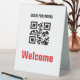 Schwarz-weißes QR Code-Menü mit berührungslosem Sc Tischaufsteller