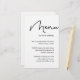 Stilvolle Elegant Schwarz-Weiß Kalligraphie minimalistische Hochzeitsmenü.
