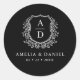 Schwarz-weißes Wappen Moderne Monogramm Hochzeit Runder Aufkleber