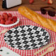 Schwarz-weißes Weihnachtsbaum-Muster-elegante Papierplatte für einen modernen stilvollen Feiertags-Party-Tabellendekor.
