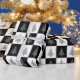 Schwarz-Weiß-Karos mit Weihnachtsbäumen.