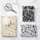 Schwarz-weißes Weihnachtsblatt-Set von 3 Geschenkpapier Set