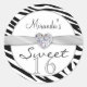 Schwarz-Weiß Zebrastreifen mit bedruckten Bildern von silberfarbenem Band und Juwel in Herzform Sweet 16 Geburtstagsparty Sticker dekoriert. Nachstehend werden die entsprechenden Elemente aufgeführt: