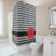 Mit diesem Zickzack, schwarz-weiß gestalteten Zickzack-Duschvorhang mit Monogramm-Initial machen Sie ein Modestatement in Ihrem Bad. Sie können den Anfangsbuchstaben, der sich auf einem großen roten Kreis-Punkt befindet, ganz einfach anpassen oder ihn in ein Wort oder einen Namen ändern. Der rote Punkt sitzt auf einem schwarzen Streifen mit roten Kanten. Das Zickzack zag grafische Design ist einer der heißesten Kunst- und Design-Trend und ist von Mode bis Wohngestaltung sehr beliebt. Koordinieren Sie mit einem passenden Bade- oder Zahnbürste- und Lotion- oder Seifenspender in diesem Geschäft. Ideal für ein stilvolles und trendiges Maskulin- oder Frauenbad.