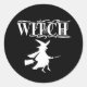 Schwarz-Wicked-Flying-Hexe Halloween Runder Aufkleber