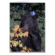 Geschenke aus einem Foto eines schwarzen Bären spielen mit einem Ahornzweig Blätter in brillanten Herbstfarben.