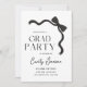 Feiern Sie Ihren Absolventen stilvoll mit dieser eleganten schwarzen Schleife für die Abschlussfeier-Einladung. Dieses moderne und minimalistische Design verfügt über ein schickes schwarzes Schleifendetail und ein sauberes, editierbares Layout, mit dem Sie den Namen des Absolventen, die Party-Details, das Datum und den Ort personalisieren können.