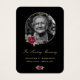 Personalisierte Schwarz-, Bordeaux- und Goldgeflechtkarten/Begräbniskarten mit vergoldetem Foto mit bordeauxfarbenen rote Rosen und Grünpflanzen.