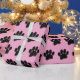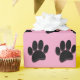 Cartoon Hund Pwprint in schwarz mit hellrosa Hintergrund. Imitate 3D-Effekt auf das Bild angewendet. Individuelle Geschenkpapier-Rollen für Zuhause und Unternehmen wie Heimtierläden. Geschenkpackidee für Hundefreunde und ihre Hunde.