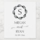 Schwarze Elegante Blumenrahmen Monogram Herz Wine Weinetikett