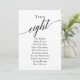 Schwarze, elegante Script-Tischnummer 8 Sitzungsta Einladung