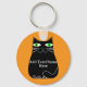 Schwarze, fette Cartoon Katze mit grünen Augen. Niedlicher Katzencharakter Benutzerdefinierte Schlüsselanhänger. Text bearbeiten, um ihn anzupassen. Geschenkidee für Katzenliebhaber.