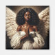 Magnet zeigt Ölgemälde von einem dunkelhäutigen schwarzen Engel mit dickem, gewelltem Haar und großen Flügeln, ihre Hände in Gebetsposition zusammengepresst, ihre Augen geschlossen. Melanin Engelkern Ästhetik mit einer übernatürlichen biblischen Figur mit afrikanischem Aussehen.