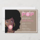 Dieses Design ist mit einem Bubblegum-Thema. Frau mit schwarzem Afro, rosafarbenem Bläschen, weißer Rahmen, beige/braun Hintergrund. Ideal für eine Babydusche.