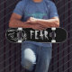 Schwarze Furcht-Skateboard-Plattform mit dem weißen lodernden Schädel