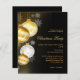 Eine Einladung für ein Geschäft, Firma Weihnachten Party. Klassischer schwarzer Hintergrund. Die Einrichtung ist mit weißen und goldfarbenen Bausteinen gestaltet. Personalisieren und fügen Sie die Details hinzu. 1 Blatt = 1 Einladung mit Druckkante bis Kante.