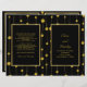 Schwarze, goldgelbe Perlen moderne Hochzeitszeremonie und Party-Programm mit einem Streichmuster mit goldenen Folienbälle mit metallischem Glanz, die wie Perlen auf dem Seil auf schwarzem Hintergrund aussehen. Dein Text ist in einem goldenen Rahmen. Dieses elegante und stilvolle Hochzeitsdesign ist vollständig anpassbar und eignet sich ideal für eine zeitgemäße Hochzeit. Man muss es in der Mitte falten. Wählen Sie nur diesen Papierwert aus, da er sich gut faltet. Beachten Sie, dass ES KEINE WIRKLICHE GOLDFOLIE, NUR DRUCKTE BILDER GIBT.