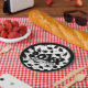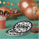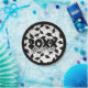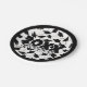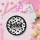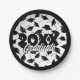 Schwarze Graduiertenkappen, die in die Luft geworfen werden, machen ein schönes Design auf dieser Graduiertenparty anpassbare Teller für eine Abschlussfeier für einen Absolventen der Highschool, Uni oder Universität. Schwarze Graduierungskappen auf weißem Hintergrund. Personalisieren Sie mit dem Jahr des Abschlusses des geschlossen Schülers.