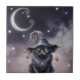 Schwarze Halloween-Katze mit einem Hexenhut Fliese