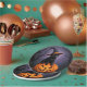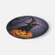 Schwarze Halloween-Katze mit einem Hexenhut Pappteller