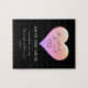 Moderne, einfache und lustige Schwarze Hochzeit ersparen das Dattelpuzzle, mit romantischem Zitat und wunderschönem rosa Herz, Symbol für starke, endlose Liebe, Wärme, Reichtum und Glauben. Unvergessliche Hochzeitsankündigung! Perfektes Geschenk für eine kleine Kohorte Ihrer liebsten und ganz besonderen Besucher. Ihr Gast wird die Begeisterung spüren, wenn Sie ihm diesen einzigartigen, bezaubernden und unvergesslichen Gefallen schicken, der ihm eine persönliche Bedeutung verleiht und nach dem Hochzeitstag für immer eine bleibende Erinnerung behalte!