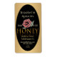Schwarzes Etikett mit dem Wort HONEY geschrieben und in metallischem Gold auf schwarzem Hintergrund mit doppelter goldener Grenze reflektiert. Wildblume. Vorkalkulierte Liste der Nettogewichtsumwandlungen von Honig. Der deskriptive Text lautet "roh, rein", kann aber in "roh, lokal" oder "EST, 2015" usw. geändert werden.