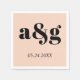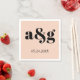 Schwarze Initialen Typografie Pfirsichrosa Mohnhoc Serviette