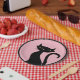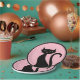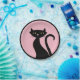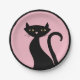 Retro Schwarze Katze Illustration auf einem rosa Hintergrund.