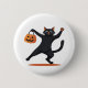 Schwarze Katze, die am Halloween-Bash heranreift u Button