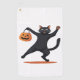 Schwarze Katze, die am Halloween-Bash heranreift u Golfhandtuch