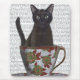 Black Cat in Teacup von FabFunky. Eine Katze sitzt in einem wunderschönen Blumenlehrer. | 191389D