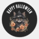 Schwarze Katze in einem Schwarzen Hexenhut Hallowe Runder Aufkleber